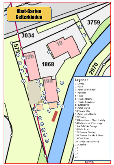 Ein Plan der gepflanzen Bäume hilft beim wieder erkennen, bis diese Früchte tragen.