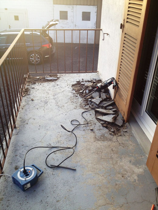 Mit roher Gewalt - oder mit dem Bohrhammer wird der gesamte Bealg abgespitzt.