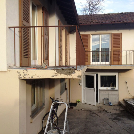 Zum Beispiel die Terrasse, welche das "Dach" über dem neuen Eingang bildet, ist recht lädiert.