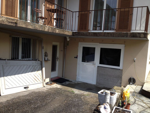 Der Hintereingang links neben dem Garagentor wird der neue Zugang zum Wohnhaus.