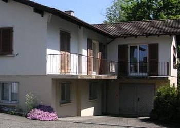 Diese Eingangstüre mit dem Bogen ist von aussen einladend. Hat jedoch den Nachteil, dass der Strassenlärm mit dem Besuch in den Wohnraum eindringt und die Wärme dafür abhaut.