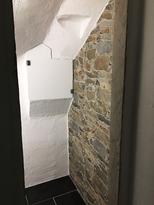 Einst ein dunkles Loch - jetz ein Blickfang der als Getränke-Econemat dient und neben Wein auch Mineralwasser beherbergt.